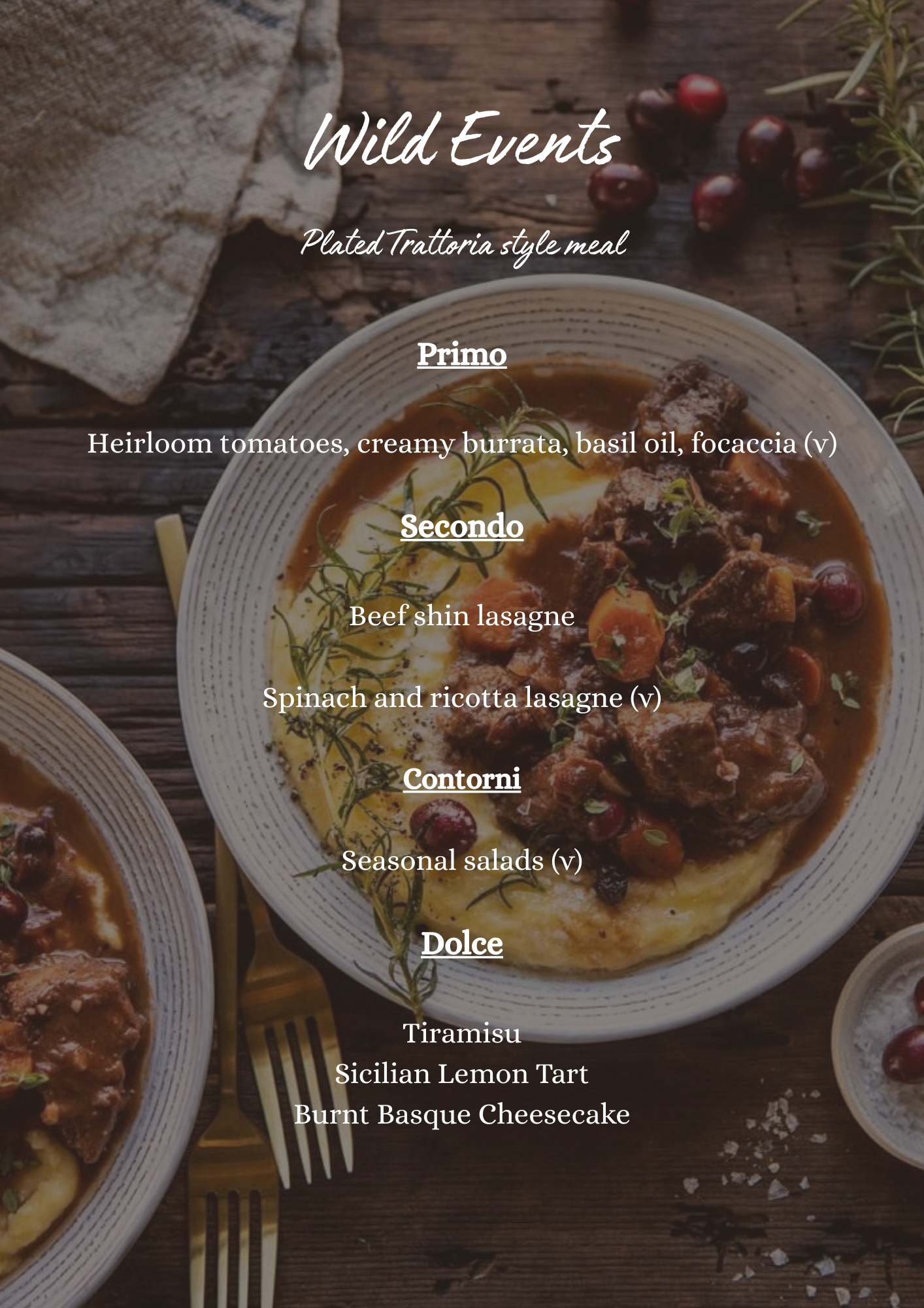 At Wild Events, we specialise in crafting bespoke wedding breakfast experiences tailored to your unique preferences.
